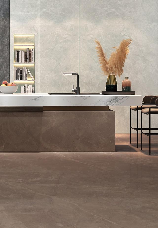 粵強瓷磚·巖板始終堅持以"傳承品質生活的質感瓷磚"為品牌定位,以獨特的審美觀和發掘力,不斷研發全新產品,將經典文化融入現代工藝技術,讓大家擁有富有藝術的質感生活空間。
